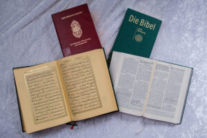 Der Zusammenhalt in der Gesellschaft schwindet. Darum wollen wir hören, was in Bibel und Koran dazu gesagt wird. An diesem Abend tauschen sich die Anwesenden unter Leitung eines Moderators über biblische und koranische Texte nach der Methode „Scriptural Reasoning“ aus. Dabei werden je eine ausgewählte Passage gelesen, es gibt eine kurze Einführung in die Texte, dann beginnt das Gespräch.